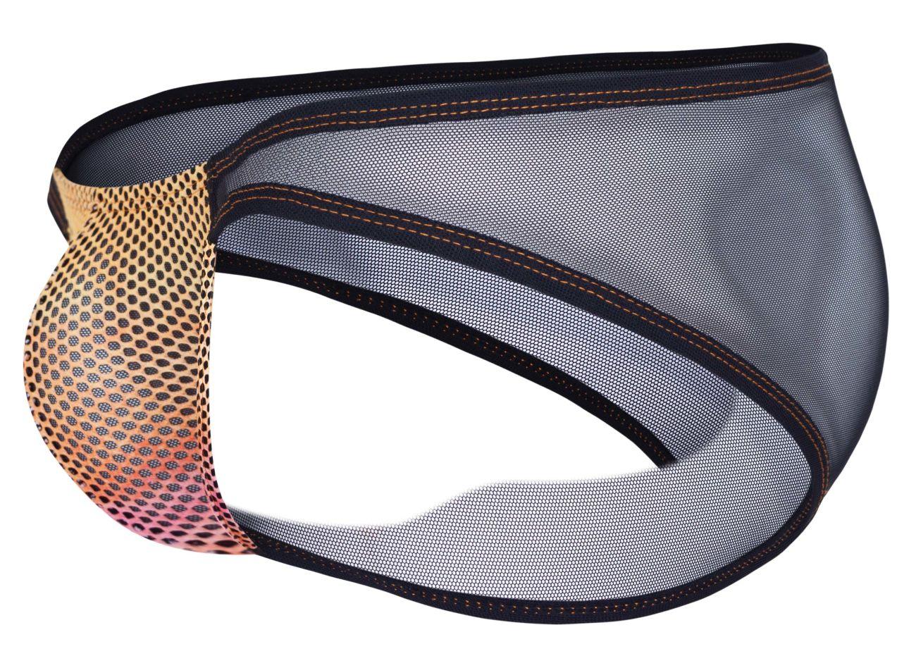 Eye-catching printed pouch with a contrasting semi-sheer mesh back for a modern and daring look.